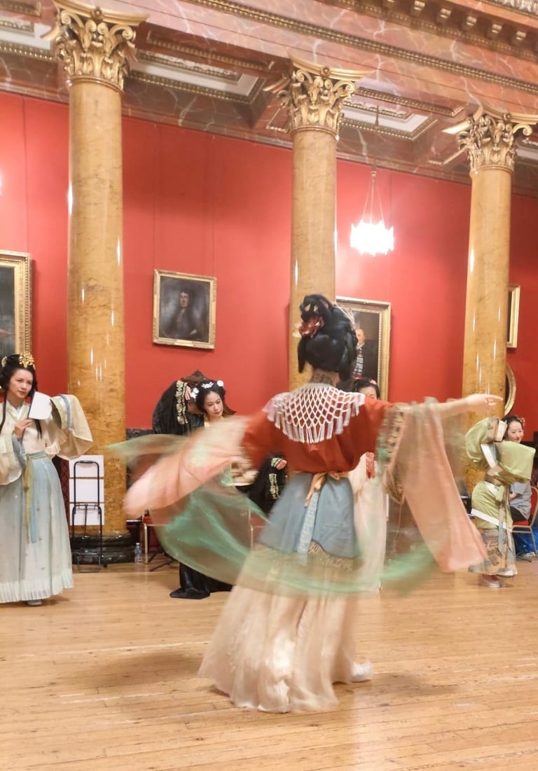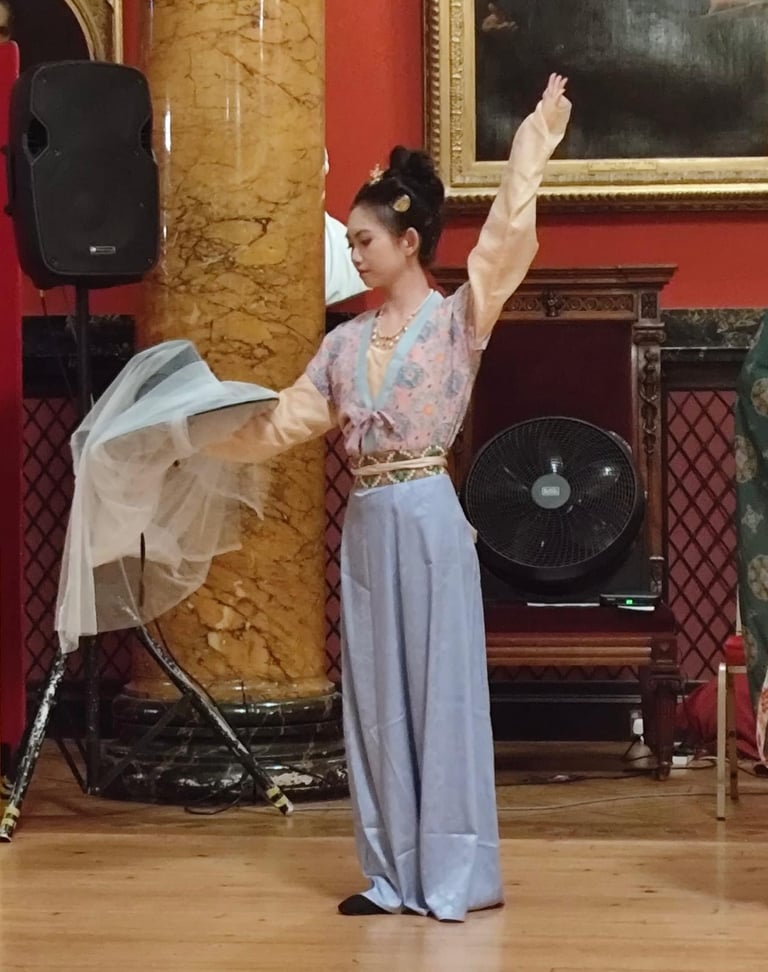 Offering a fascinating glimpse into the fashion history of China with some truly beautiful hàn fú, demonstrations of court etiquette, Tang dynasty dances, and including an enchanting zither performance on a gǔzhēng it is safe to say that if you're interested in Chinese cultural history this is the show to watch. Not only do the performers dress in a myriad of historic styles but there are also moments of explanation of how and why fashions changed throughout the centuries and their impact on court dance styles. My personal favourite has to have been the demonstration of water sleeves; the strength and control needed to not only move the fabric the right distance and direction but also make it look effortlessly weightless was masterfully showcased by the dancer.